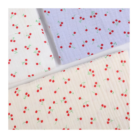 Yumuşak deri çift katmanlı krep baskılı pamuklu gazlı bez kumaş sonbahar ve kışlık pijama kumaş